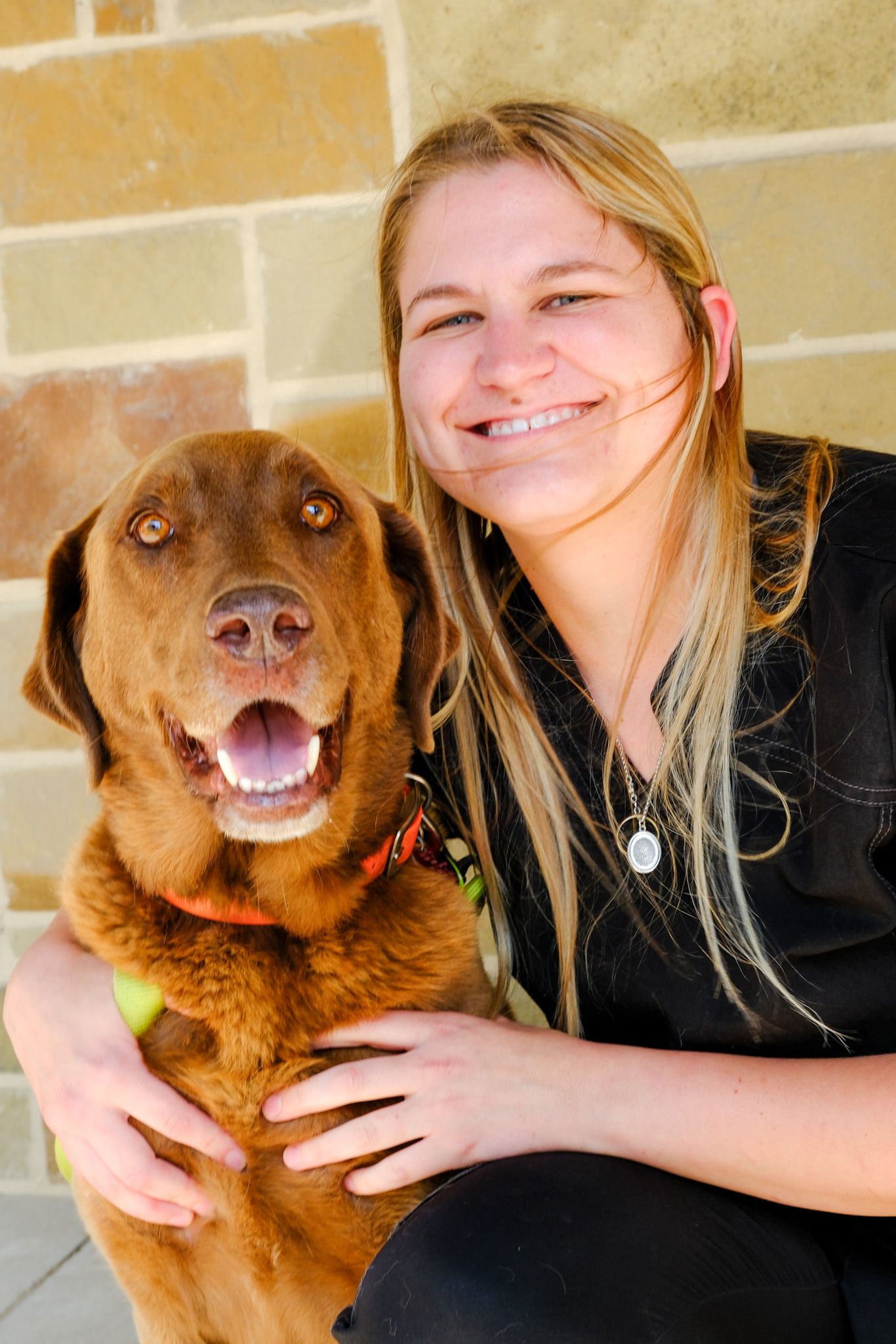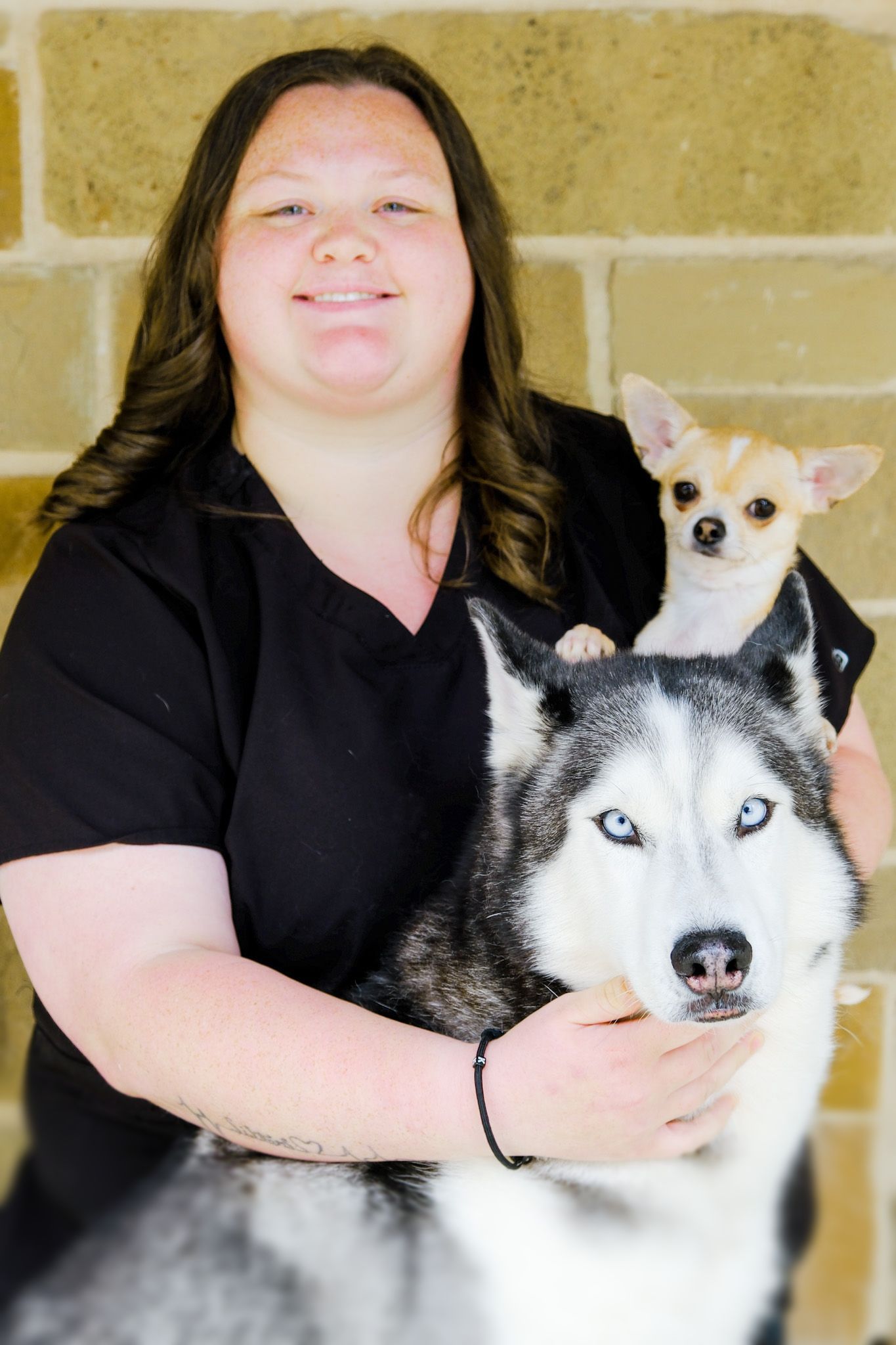Ashley Lumpkin started with the Ennis Veterinary Clinic in 2017 as a volunteer high school student. She graduated from The Cedar Valley Veterinary Technology program in 2023 and short after got her License in Veterinary Technology. Here she is with her two fur-kids, Nova and Annie
